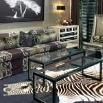 This floor features a stunning paradox between the traditional nutty, brown hues of White Oak, contrasted against the undulating blue and gray tones of a custom stain. For more than 25 years, Pittsburgh based, Denham-Vitalie Design LP, has been one of the most respected and visionary design firms in the United States. The designers worked with their Wide Plank Specialist to bring an ordinary wood floor, to extraordinary, for this unique pop culture-infused estate that paid homage to the likes of Elvis Presley, Marilyn Monroe, and Alice in Wonderland.